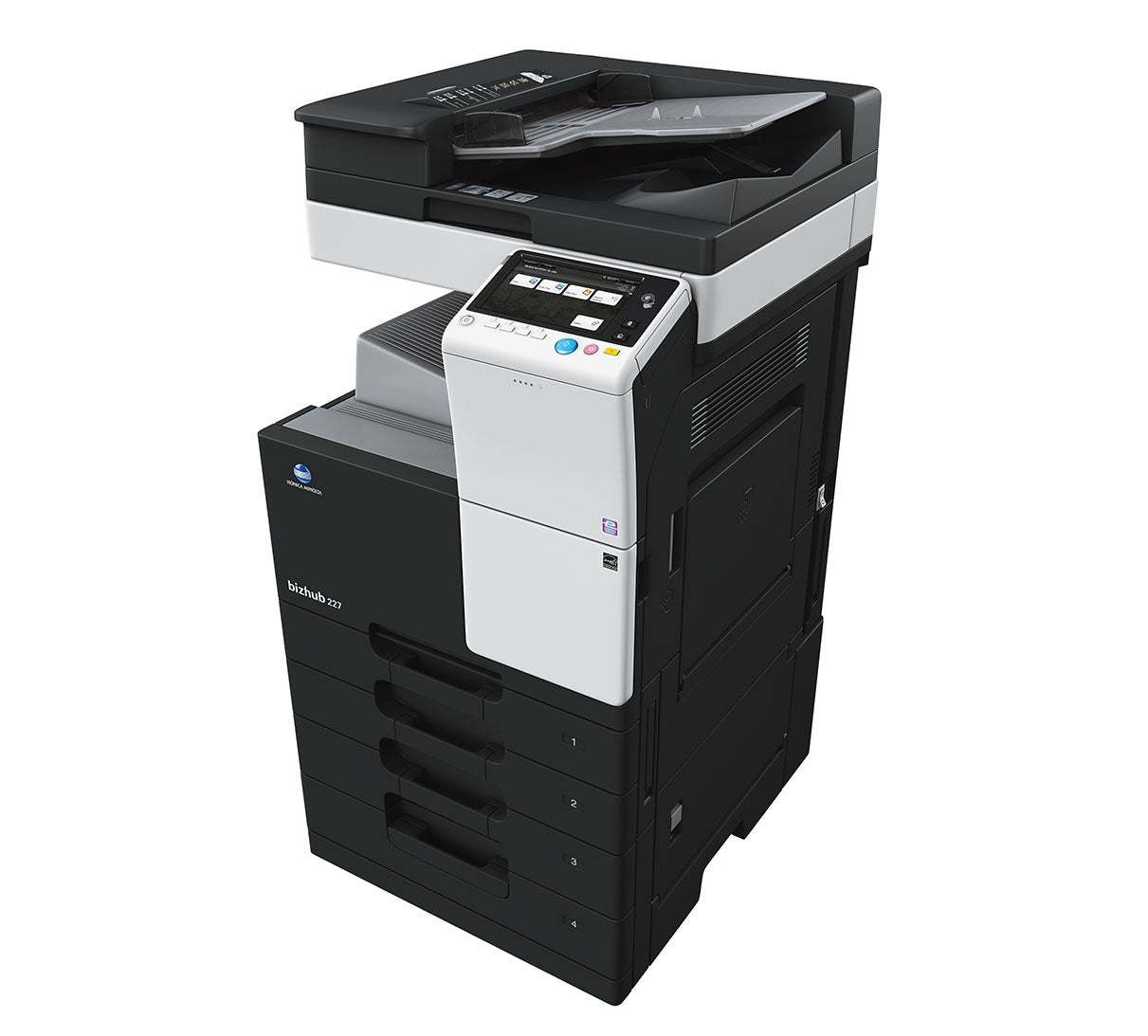 The bizhub 227 multifunction printers from konica minolta have a print/copy output of up to 22 ppm to help keep pace with growing workloads.